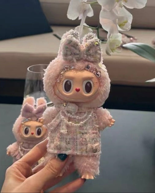 - Fashionable Exquisite Style 17CM Labubu Doll Tweed Fabric Clothes Set